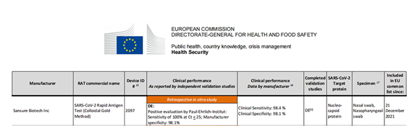目前市场上用于新冠快速检测的产品非常多,在欧盟官网COVID-19新冠抗原快速检测电子试剂的清单中列出了几百项产品,均已获得CE认证。欧盟HSC在此基础上针对新冠抗原快速检测电子试剂提出了更严格的要求,需要厂家提供更多的验证资料证明产品的性能才可进入Common list。