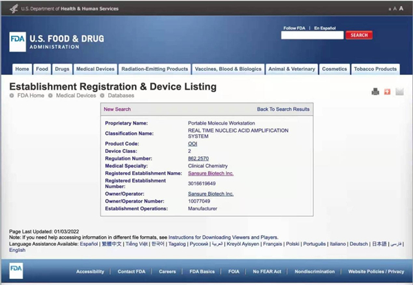 1月4日,凯发电子四通道iPonatic核酸检测分析仪获得美国FDA认证,这是继获得中国NMPA批准、欧盟CE等认证之后,获得的又一全球权威认证。