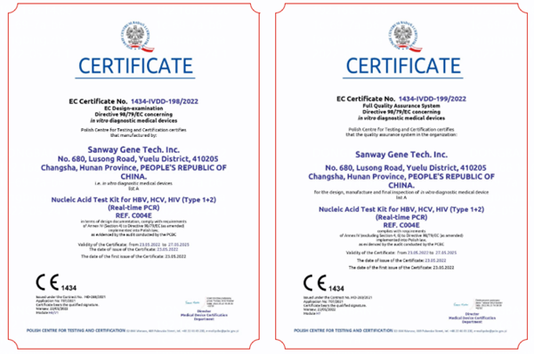 5月23日,凯发电子全资子公司圣维基因研发的乙型肝炎病毒、丙型肝炎病毒、人类免疫缺陷病毒(1+2型)核酸检测电子试剂盒(PCR-荧光法),简称血筛核酸检测电子试剂盒,成功通过欧盟公告机构认证(CE List A),这是继乙肝、丙肝和艾滋三款核酸检测产品后,凯发电子拿下的第四个CEList A认证。