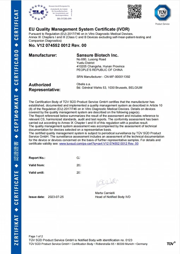 此次凯发电子HPV13+2核酸检测电子试剂获得CE IVDR认证,是公司产品性能及国际化质量体系升级的重要成果,奠定了公司在欧盟市场的先发竞争优势,扩展了公司产品的市场覆盖范围,为进一步拓展海外客户群提供了强有力支持。