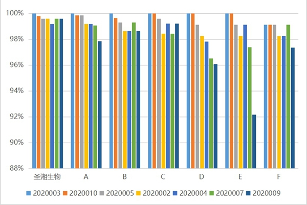 凯发电子电子试剂阴性样本检测结果的符合率也领先于其它主流厂家,具有较好的特异性。综合室间质评结果来看,凯发电子新冠病毒核酸检测电子试剂检出率、重复性及特异性上具有较大的优势。